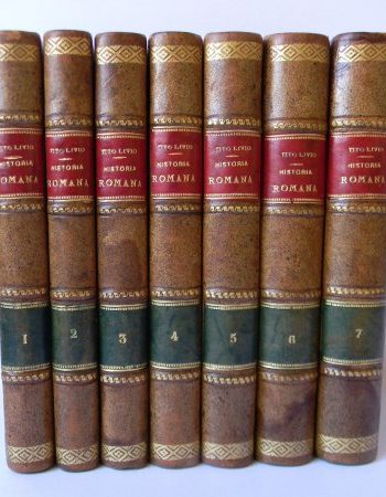 Madrid; Librería de la Viuda de Hernando/Librería de los Sucesores de Hernando, 1888-1915. Traducidas del Latín al Castellano por D. Francisco Navarro y Calvo. 7 tomos. Encuadernación en plena piel de época, con tejuelos y títulos dorados. Octavo (18 x 12.5 cm). xxxii, 316, 328, 416, 400, 432, 439 y 452 páginas. Estado de conservación: Muy buen estado, poseen timbre de librería y sello de catalogación en portada.