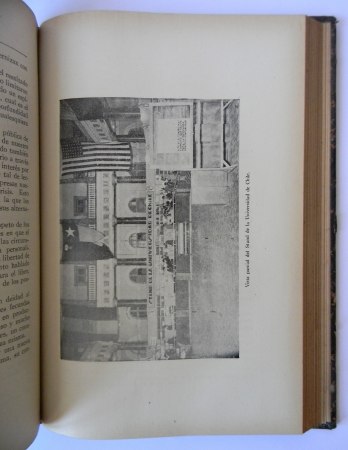 Santiago; Prensas de la Universidad de Chile, 1937-38. Primero y Segundo Trimestres de 1937/Tercero y Cuarto Trimestres de 1937. El número doble correspondiente al tercer y cuarto trimestre está completamente dedicado a la Exposición del Libro Americano y Español celebrada con motivo de los 94 años de la Universidad de Chile, destaca en este contexto el homenaje a José Toribio Medina. Textos de Mariano Latorre, Domingo Amunátegui Solar, Raúl Silva Castro, Ricardo Donoso, Ernesto Montenegro, Sady Zañartu, Gabriel Amunátegui, Guillermo Feliú Cruz, Domingo Melfi, Luis Galdames, Luis Alberto Sánchez. Encuadernación de tapas duras. Cuarto (27 x 19 cm). 269 y 213 páginas, con numerosas láminas. Estado de conservación: Muy buen estado.