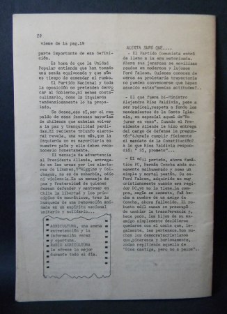 Valparaíso; Órgano Oficial del Partido Nacional, 1972. Año I. N° 2. Rústica. 25.5 x 18 cm. 20 páginas. Estado de conservación: Buen estado.