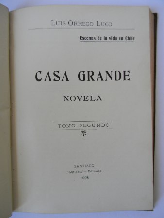Casa Grande. Novela: Escenas de la Vida en Chile [Primera Edición] | Luis Orrego Luco