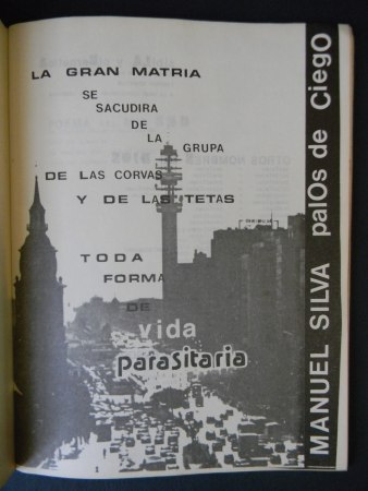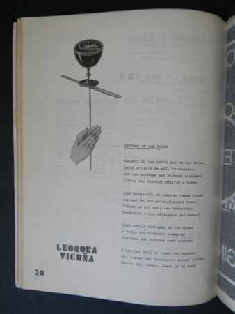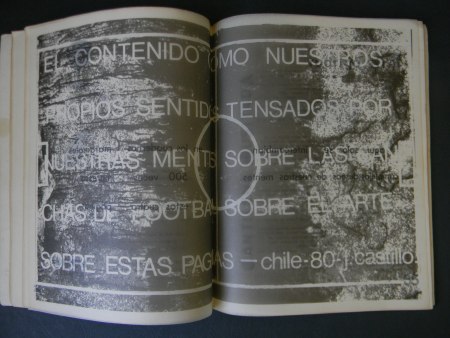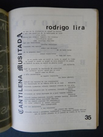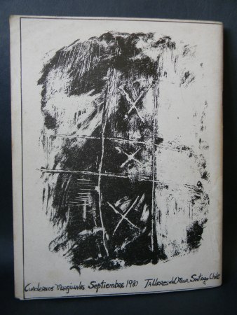 Santiago; Talleres Gráficos y Literarios Del Mar, 1980. Portada: Juan Carlos Bustamante. Obra páginas centrales: Juan Castillo. Collage y fotografías: Leonora Vicuña. Contiene poema de Rodrigo Lira. Encuadernación rústica. Octavo mayor (22×17 cm). 64 páginas, profusamente ilustrada. Estado de conservación: Buen estado, edición completa aunque con algunas erratas.