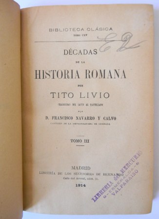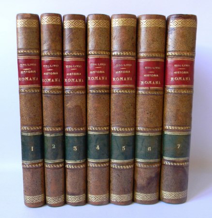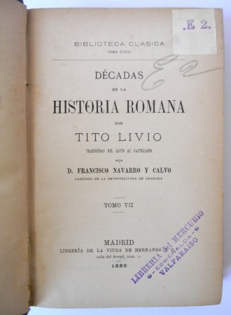 Madrid; Librería de la Viuda de Hernando/Librería de los Sucesores de Hernando, 1888-1915. Traducidas del Latín al Castellano por D. Francisco Navarro y Calvo. 7 tomos. Encuadernación en plena piel de época, con tejuelos y títulos dorados. Octavo (18 x 12.5 cm). xxxii, 316, 328, 416, 400, 432, 439 y 452 páginas. Estado de conservación: Muy buen estado, poseen timbre de librería y sello de catalogación en portada.