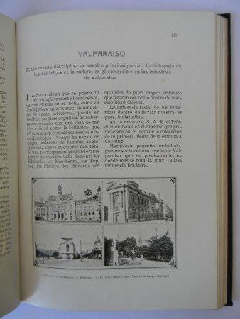 Santiago; Imp. y Lit. La Ilustración, 1925-1926. Primera edición. Encuadernación en tela editorial. Cuarto mayor (27.5×20 cm). 7 hojas con retratos de la Familia Real Británica, con reseñas al reverso + 249 páginas, profusamente ilustradas, con las actividades desarrolladas por la colonia británica en Chile, principalmente en Santiago y Valparaíso, además del registro de actividades desarrolladas por el príncipe en su visita al país. Estado de conservación: Buen estado, tapas con leve desgaste.