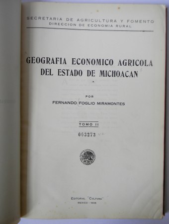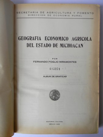 Geografía Económico Agrícola del Estado de Michoacan | Fernando Foglio Miramontes