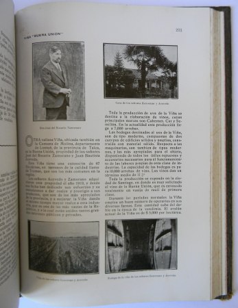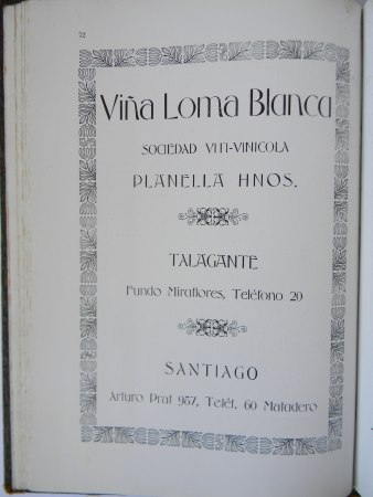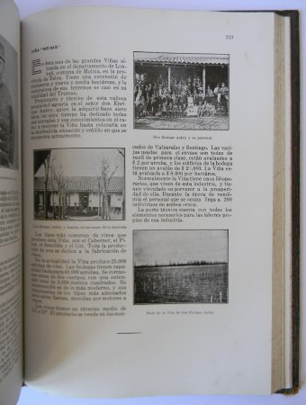 Santiago; Imp., Lit. y Enc. «La Ilustración», 1924. Primera edición. Contiene registro de todas las viñas del país, considerando nombre de la viña, propietario, dirección postal y hectáreas. Encuadernación de tapas duras. Cuarto (27.5 x 19.5 cm). 325 páginas + 2 láminas desplegables, profusamente ilustrado con fotografías en blanco y negro. Estado de conservación: Buen estado, tapas con algún desgaste en los bordes; páginas 124-25 con rozadura que afecta una imagen y un texto.