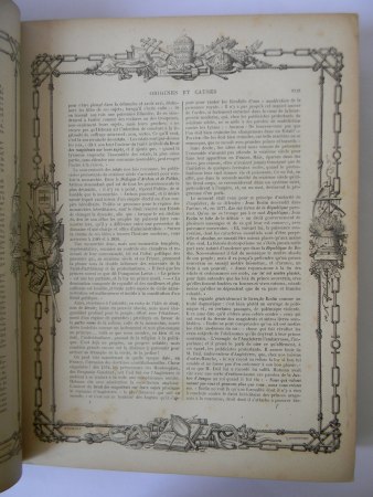 París; Librairie du Progrés, No indica año (aprox. 1878-1880). Ornée de 600 gravures exécutées par l´élite des artistes sur les dessins de M. H. De La Charlerie. 2 volúmenes. Encuadernación holandesa. Folio (32×25 cm). clxxii+716+775 páginas, profusamente ilustrados. Estado de conservación: Buen estado, desgaste en los bordes de las tapas, tomo 1 presenta corte en lomo.