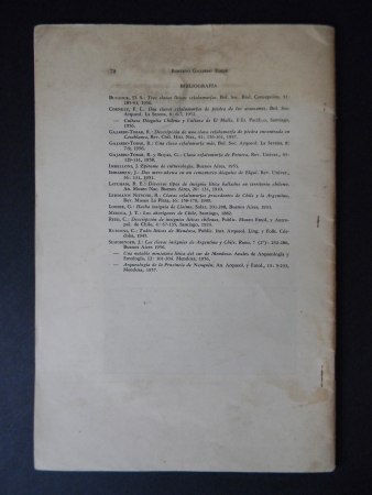 Mendoza, Argentina; Separata de los Anales de Arqueología y Etnología, Facultad de Filosofía y Letras, U. N. C., 1962-63. Rústica con corchetes. Cuarto (27×18 cm). Págs. 7-70, con ilustraciones. Estado de conservación: Buen estado, última página con mancha leve.