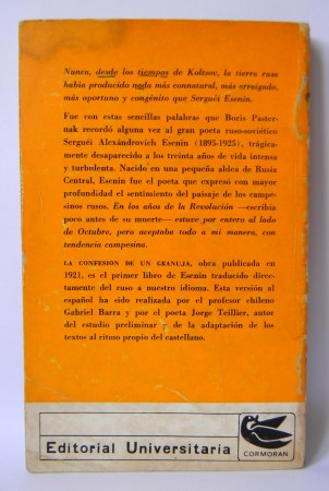 La Confesión de un Granuja (Antología Poética) 1910-1925 | Serguei Esenin; Versión Poética de Gabriel Barra y Jorge Teillier