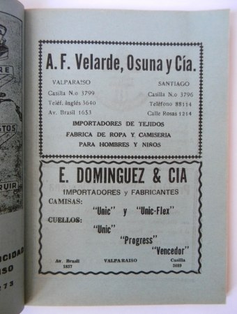 Valparaíso; Imp. «Aurora de Chile», 1939. Segunda edición. Posee timbre de la Sociedad Explotadora de Tierra del Fuego. Encuadernación rústica. Octavo (18.5 x 13.5 cm). 127 páginas, con numerosas páginas de publicidad. estado de conservación: Muy buen estado.