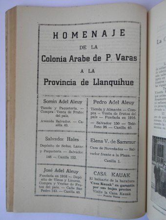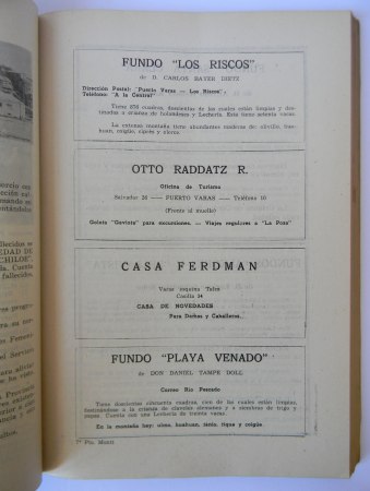 Padre Las Casas; Impreso en los Talleres de la Imprenta y Editorial «San Francisco», 1943. Primera edición. Integrantes del Comité: Blanca F. de Vargas, Presidente del Comité de Cultura; Francisco Sepúlveda Gutiérrez, Intendente de la Provincia de la Provincia de Llanquihue; Julio Bazán González, Presidente del Comité de Defensa y Adelanto Regional; José Yuraszeck D., Alcalde de la Comuna de Puerto Montt; Wally Sch. de Fornés, Pro-secretaria del Comité; Juan Oelckers Sch., Luis Binder G., Vicente Lobo T., Vocales del Comité; Amalia Díaz C., Secretaria del Comité de Cultura; Salvador Hernáez C., Presidente de la Comisión de Exposición; Ewaldo Hohmann J., Secretario General del Comité. Encuadernación rústica. Cuarto (26×18 cm). 384 páginas, profusamente ilustrado con fotografías y publicidad de instituciones y casas comerciales de la zona. Estado de conservación: Buen estado, cubierta posterior con algunas manchas; marca de corrector en portada y firma de anterior propietario en reverso de cubierta.
