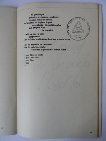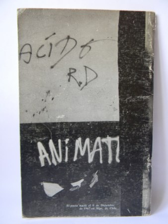 Santiago; Ediciones de La Hecatombe, 1987. Primera edición. Encuadernación rústica. Cuarto (26×16.5 cm). 59 páginas. Estado de conservación: Buen estado, tapas con algún desgaste leve; posee 2 timbres de anterior propietario, sin afectar el texto.