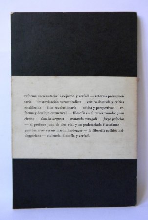 Santiago; Departamento de Filosofía de la Facultad de Filosofía y Educación, Universidad de Chile, 1969. Director: Juan Rivano. Textos: Centro de Alumnos de Filosofía, Juan Rivano, Sebastián del Margen, Ilich Soto, Jorge Palacios, Armando Cassígoli, Edison Otero, Dantón Urqueta. Encuadernación rústica. Cuarto (25 x 16 cm). 112 páginas. Estado de conservación: Buen estado.