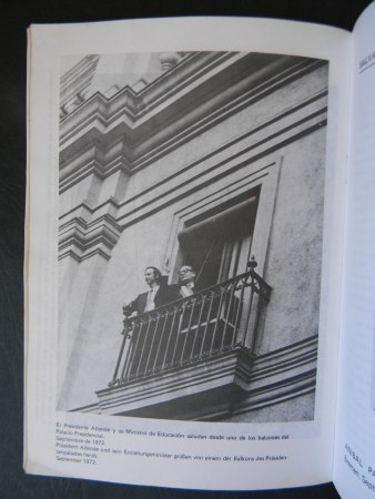 Bremen, Septiembre 1983. Ejemplar firmado y dedicado por el autor, ex-ministro de educación del Gobierno de la Unidad Popular. Texto en español y alemán. Prólogo de Martín Franzbach. Rústica. Octavo (21×15 cm). 26 y 23 páginas, con alguna ilustración. Estado de conservación: Buen estado, cubierta con algún desgaste.