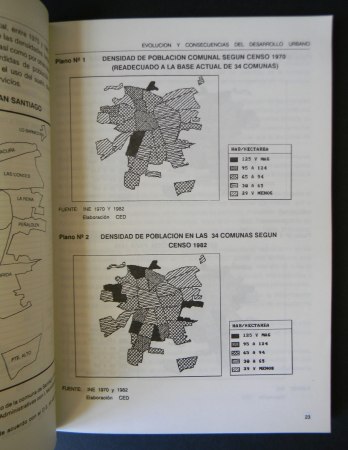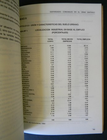 Santiago; Centro de Estudios del Desarrollo, CED, 1990. Primera edición. Colaboradores: Ernesto Calderón, Víctor Maldonado, Gustavo Munizaga, Ernesto Tironi, Pablo Trivelli. Encuadernación rústica. Cuarto menor (23×17 cm). 235 páginas, con numerosos cuadros, gráficos y planos. Estado de conservación: Muy buen estado, cubiertas con leve desgaste; posee timbre de la arquitecto Giuletta Fadda en página de respeto.