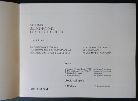 [Magallanes]; Foto Club Posesión ENAP, 1984. Director del Salón: Sr. Max Rivas. Encuadernación rústica. Octavo apaisado (18 x 22 cm). Páginas sin numerar, [24] pp. Estado de conservación: Excelente.