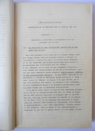Valparaíso; Universidad Católica de Valparaíso, Instituto de Filosofía, c. 1975. Traducción del prof. Dr. Jorge E. Rivera Cruchaga. Probablemente una de las primeras versiones del texto que finalmente publicara Editorial Universitaria en 1997. Encuadernación rústica. Folio (32 x 21 cm). 260 páginas. Estado de conservación: Buen estado, cubiertas con algún desgaste; anotación en portada: nombre y dirección del traductor: J Rivera C. Lusitania 191.