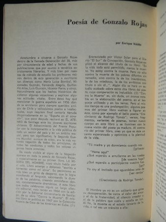 Valdivia; Boletín Informativo de la Facultad de Bellas Artes, Universidad Austral de Chile, Mayo-Junio de 1970. Número 2. Textos de/sobre: Jorge Urrutia; Rubén Sotoconil; Enrique Valdés; Lucía F. de Schütz; Giuseppe Ungaretti. Encuadernación rústica. Cuarto (26 x 18.5 cm). 32 páginas. Estado de conservación: Buen estado, cubiertas con leve desgaste.
