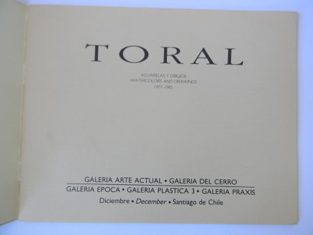 Santiago; Galería Arte Actual/Galería del Cerro/Galería Época/Galería Plástica 3/Galería Praxis, 1985. Catálogo dedicado a las acuarelas del año 1985. Rústica. Octavo apaisado (20.5×26 cm). 20 páginas, profusamente ilustrado. Estado de conservación: Buen estado, cubiertas con leve desgaste.